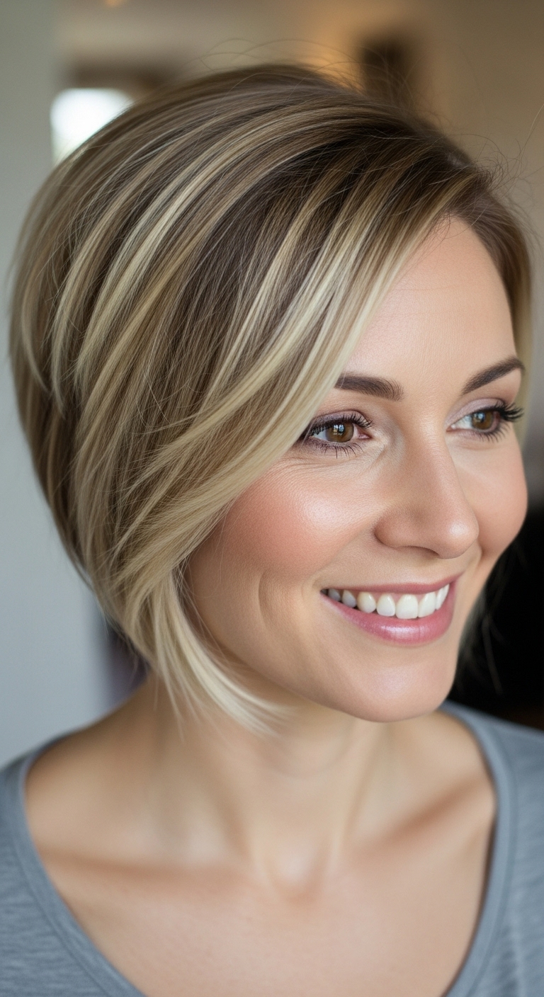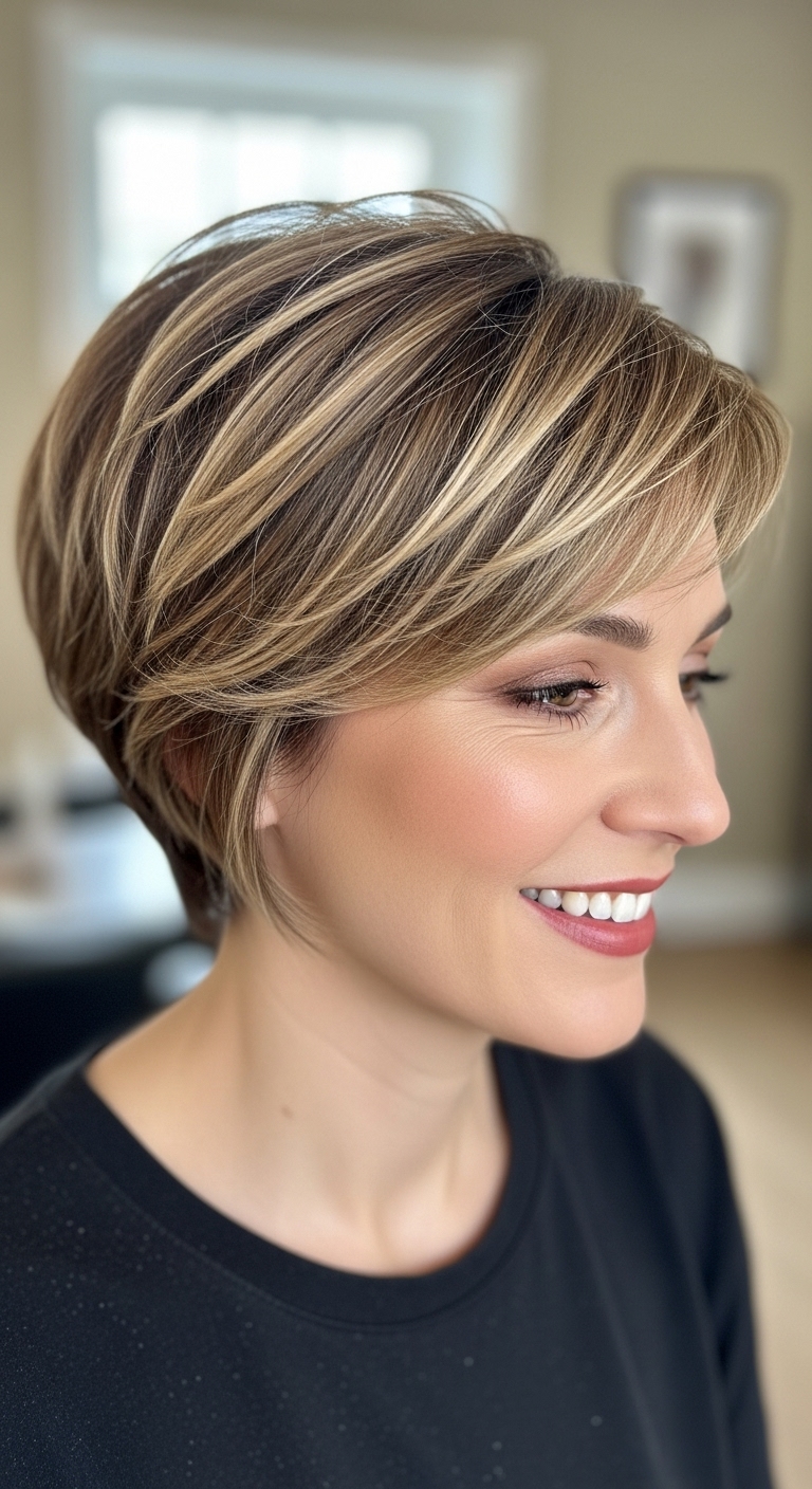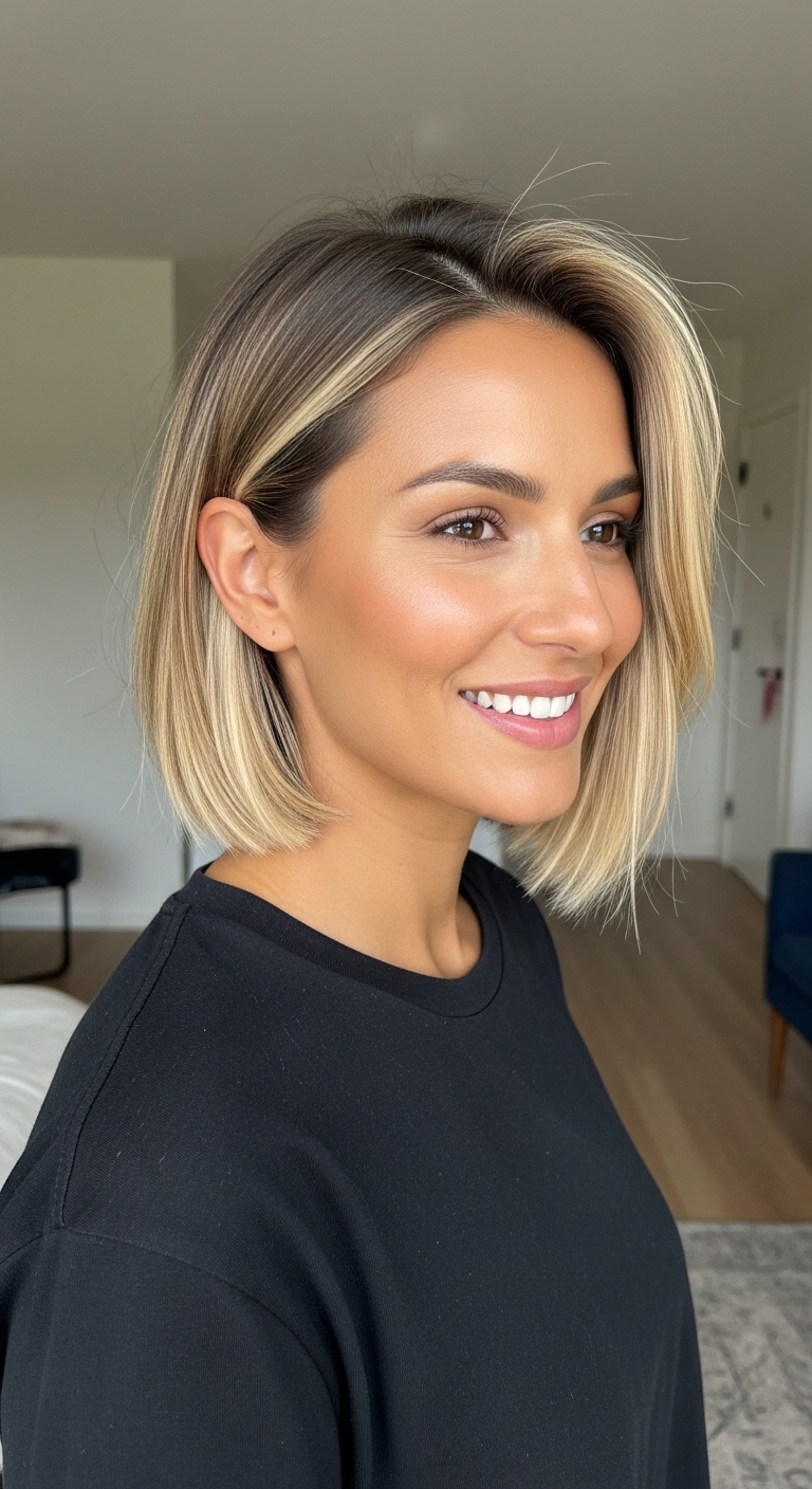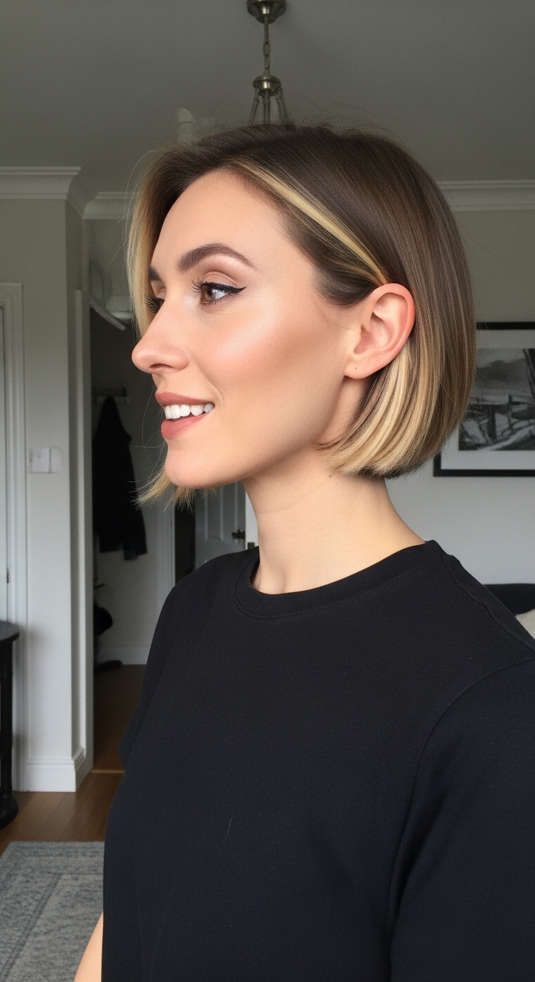 Ein glatter Bob oder Pixie Cut mit dezenten Balayage-Akzenten wirkt seriös und elegant. Ideal, um einen modernen, professionellen Eindruck zu hinterlassen.