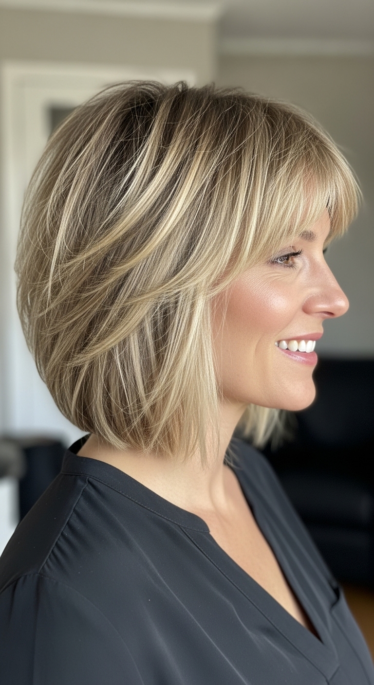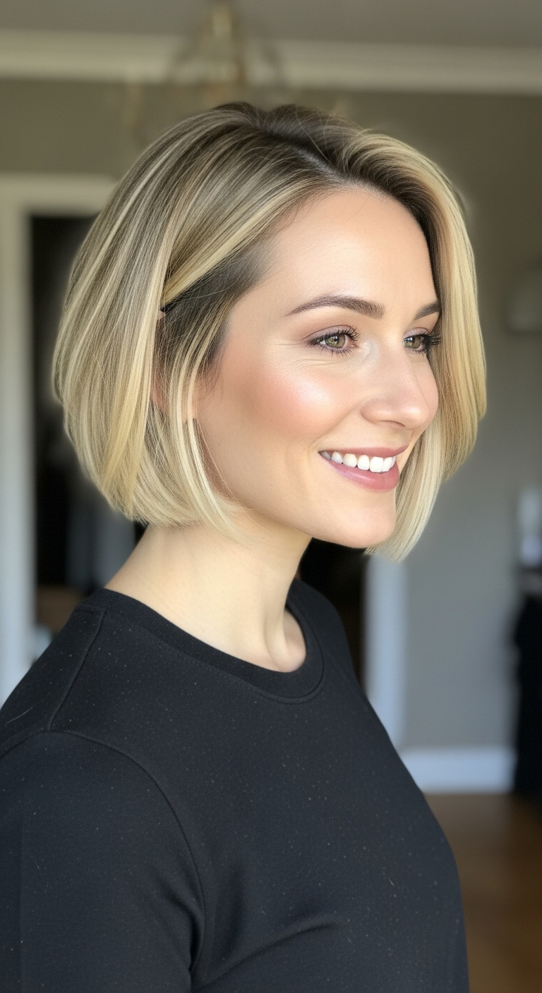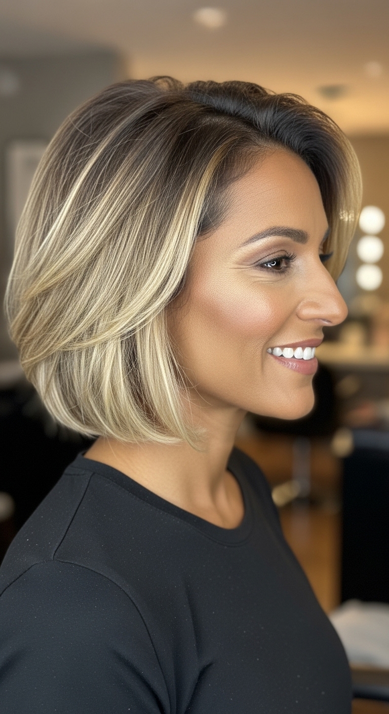 Ein kinnlanger Bob ist ein echter Klassiker. Durch Balayage erhält er mehr Tiefe und Lichtreflexe, wodurch das Haar voluminöser wirkt. Dieser Schnitt eignet sich perfekt für Frauen, die zeitlose Eleganz lieben.