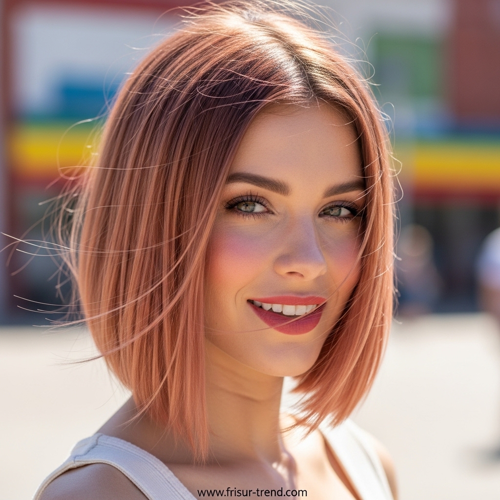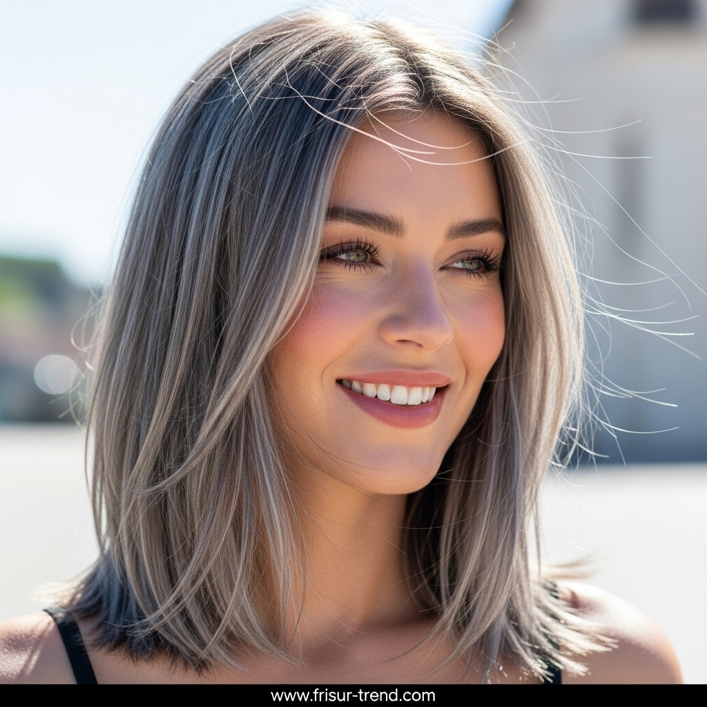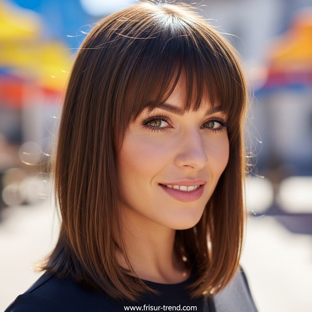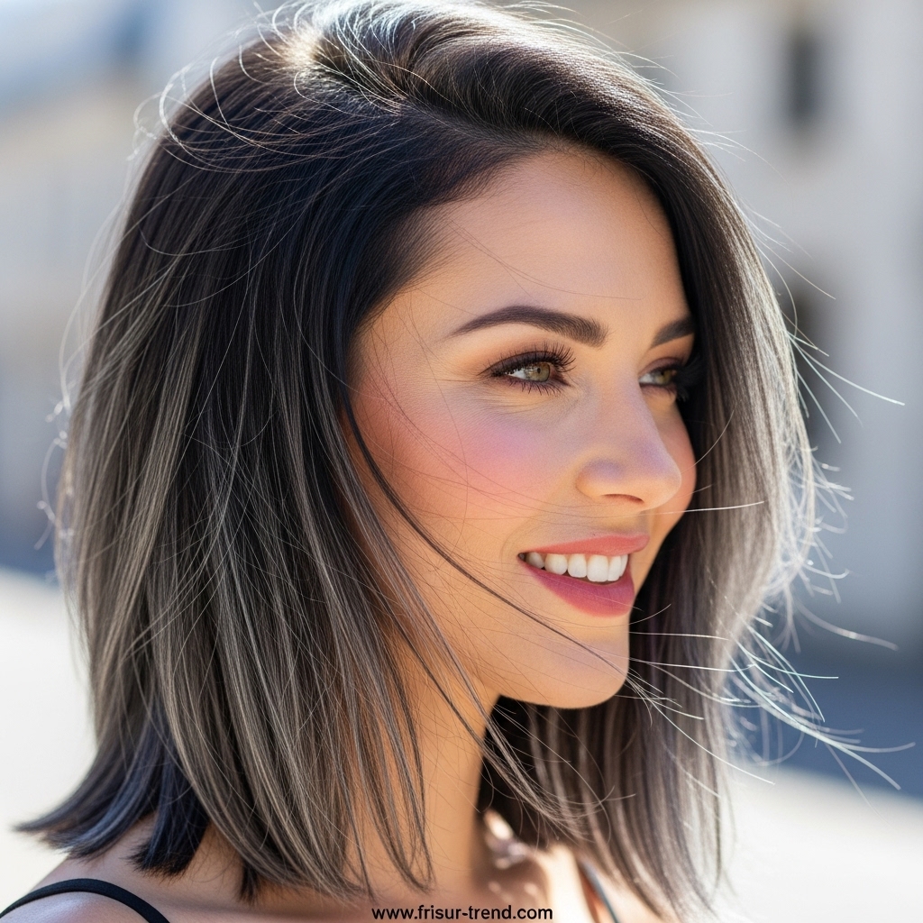 Diese Frisur zieht Blicke an, ohne übertrieben zu wirken. Sie signalisiert, dass die Trägerin Wert auf ihre Erscheinung legt, ohne aufdringlich zu sein. In der Modewelt gilt glattes, mittellanges Haar als idealer Rahmen für Gesichter jeder Form. Ob oval, herzförmig oder rund – die glatte Struktur bringt die Gesichtszüge besonders gut zur Geltung.