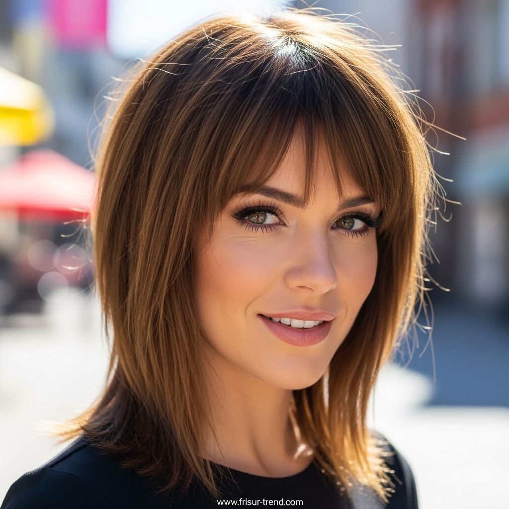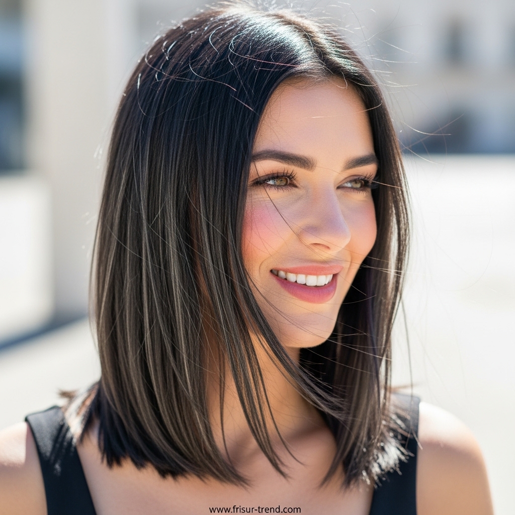 Die glatte, mittellange Frisur ist mehr als nur eine Haarlänge. Sie ist ein Statement, das Eleganz, Stil und Glamour auf den Punkt bringt. Sie lässt sich leicht variieren, passt zu jeder Gesichtsform und wirkt in jedem Kontext beeindruckend.