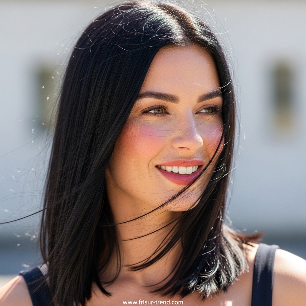 Das Faszinierende an glattem, mittellangem Haar ist seine Vielseitigkeit. Es kann sowohl für den Alltag als auch für formelle Anlässe perfekt inszeniert werden. Im Büro wirkt es professionell und gepflegt, bei gesellschaftlichen Events hingegen elegant und verführerisch. Diese Frisur vermittelt sofort ein Glamour-Feeling, ohne dass man viel Aufwand investieren muss.
