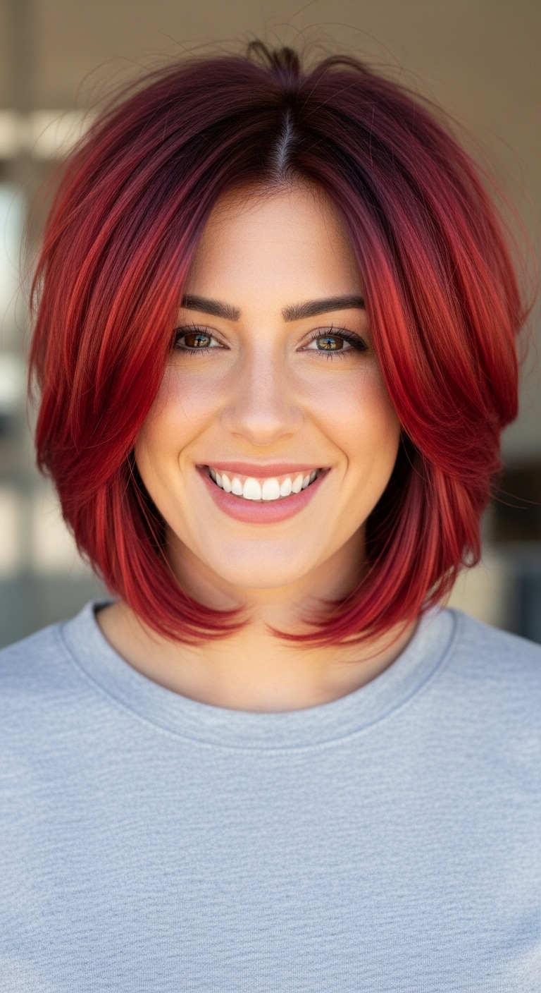 - Rundes Gesicht: Gestufte Bobs oder sanfte Wellen strecken optisch.