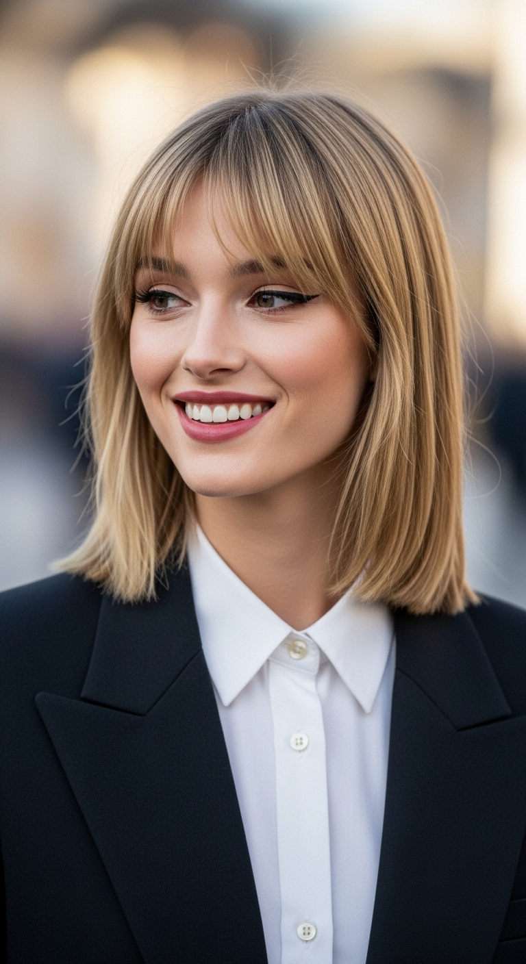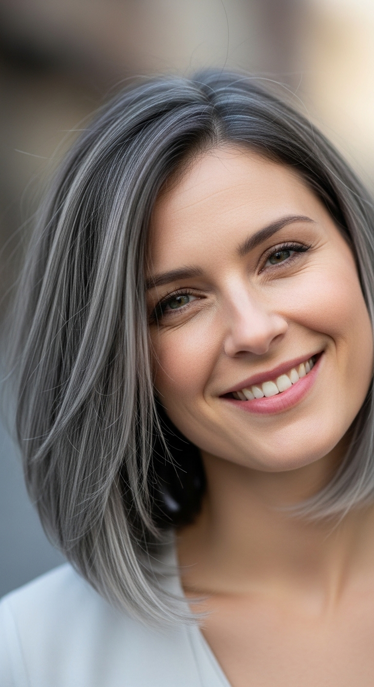 Glatte Looks wirken immer elegant und modern. Ein gerader Schnitt mit leicht abgerundeten Spitzen sorgt fĂŒr ein gepflegtes Erscheinungsbild. Wer etwas Dynamik wĂŒnscht, kann sanfte Stufen einarbeiten, die dem Haar Bewegung verleihen und das Gesicht umrahmen.
