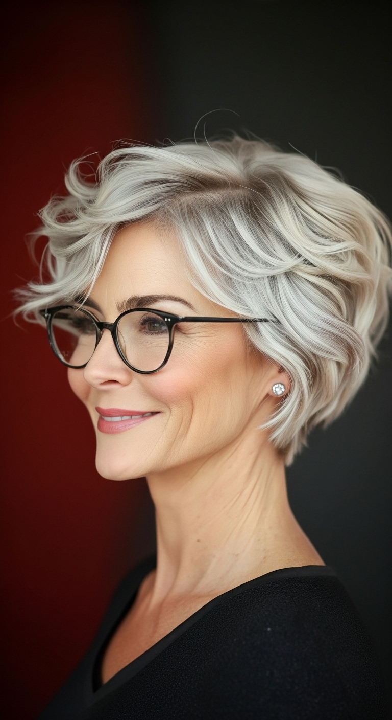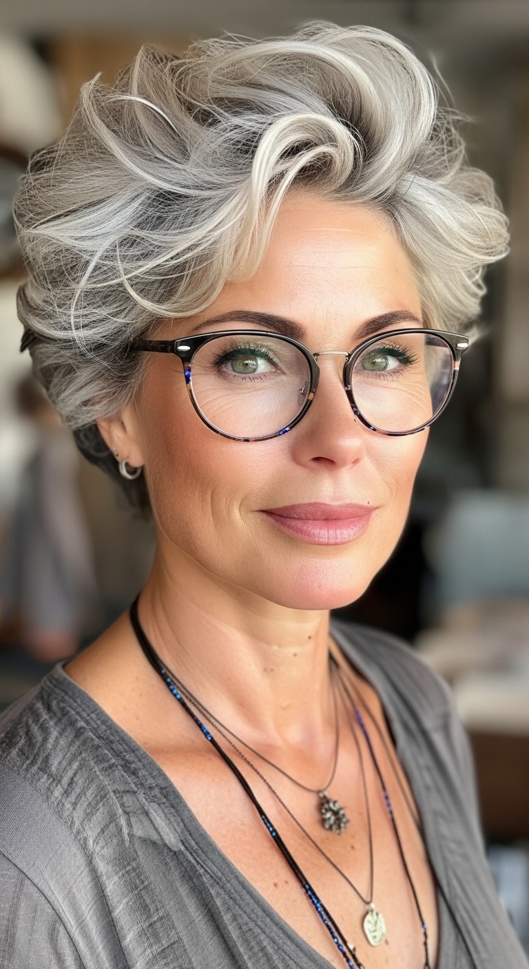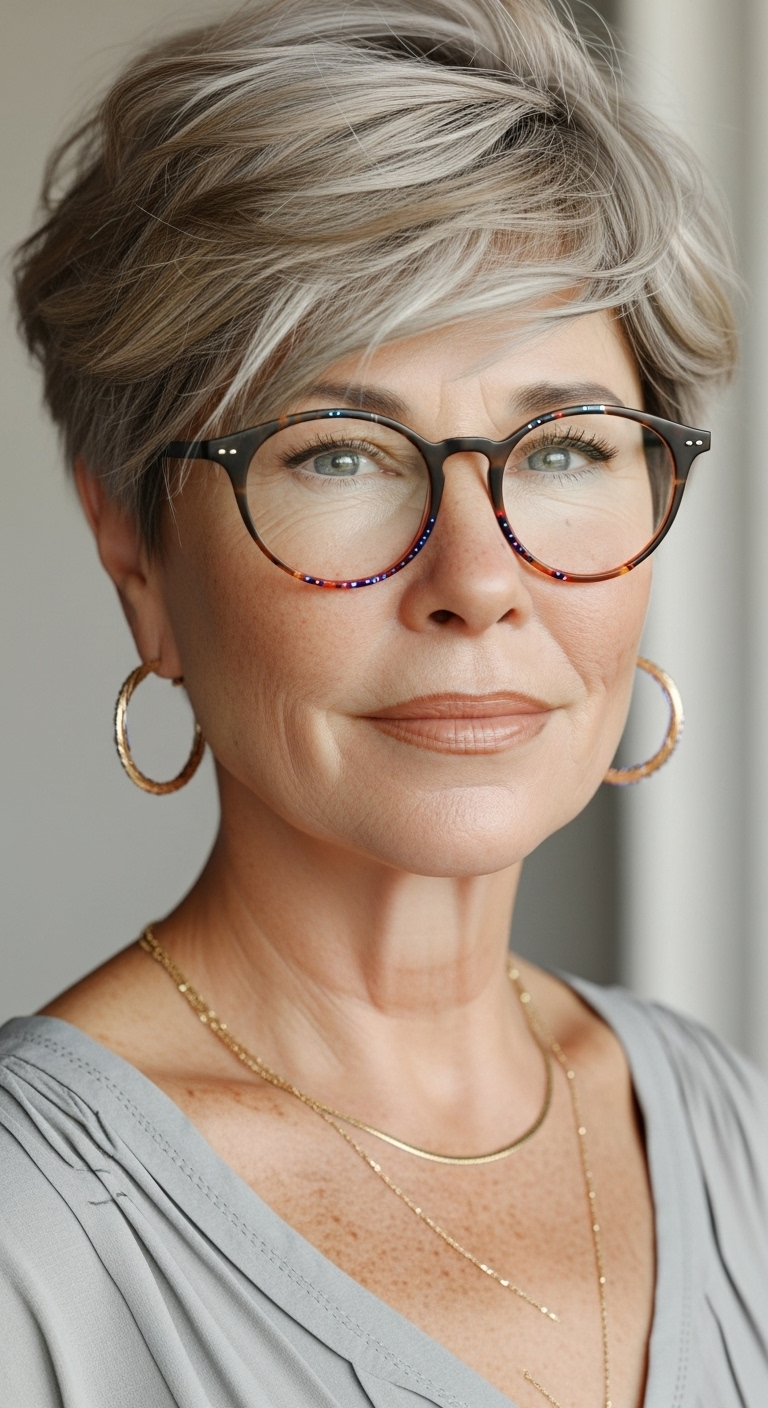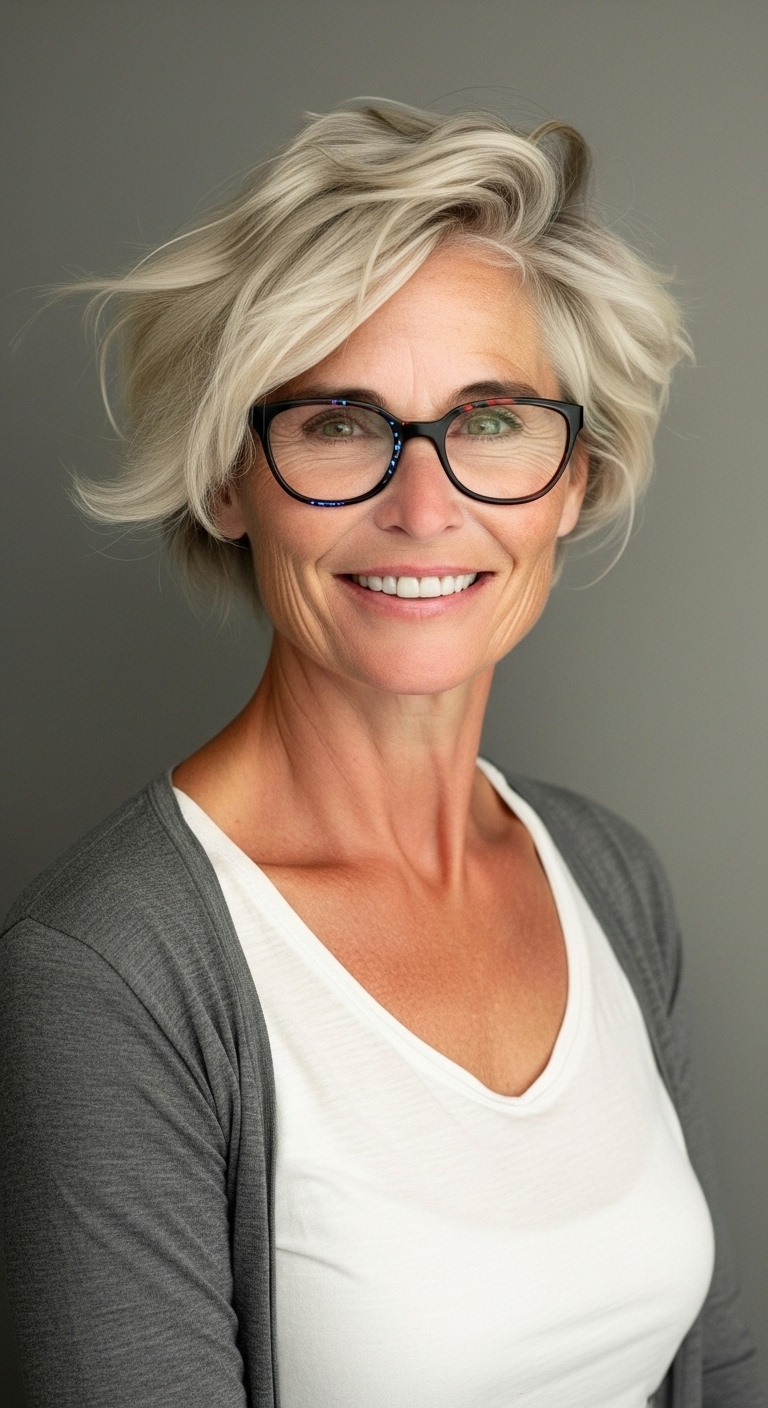 Kurzhaarfrisuren ab 60 mit Brille kombinieren Stil, Modernität und Selbstbewusstsein.