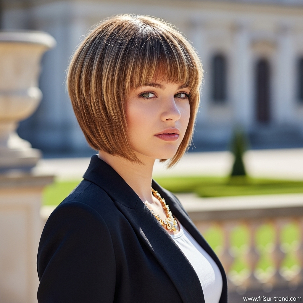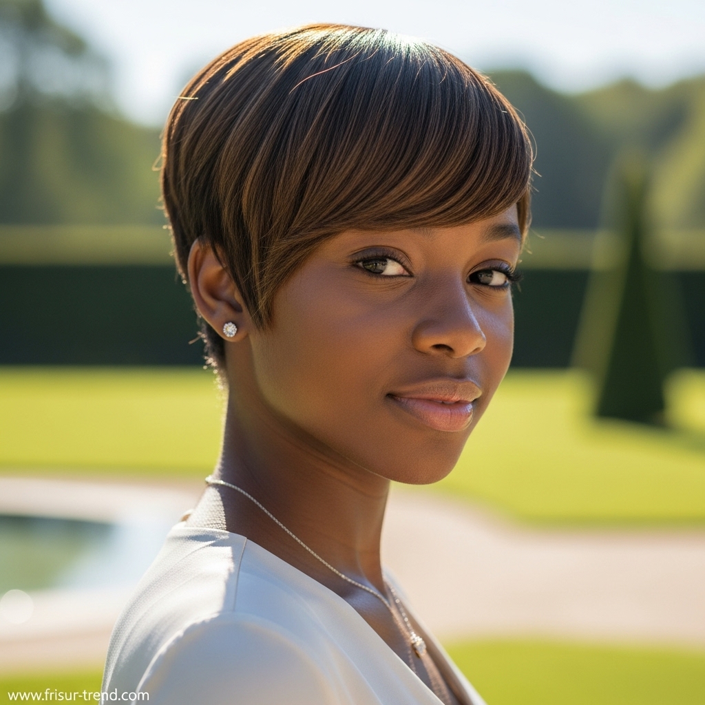 Bei Kurzhaarfrisuren wird der Pony zum Mittelpunkt des Looks. Ein gerader Pony verleiht Struktur, ein fransiger wirkt verspielt, ein seitlicher bringt Bewegung ins Haar.