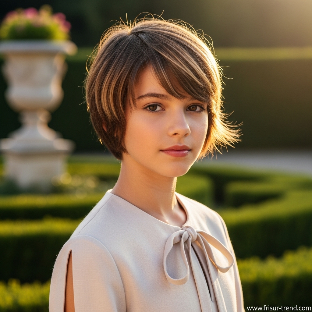 Diese Balance aus StÀrke und Leichtigkeit ist es, die Kurzhaarfrisuren MÀdchen mit Pony zu einem echten It-Look macht.