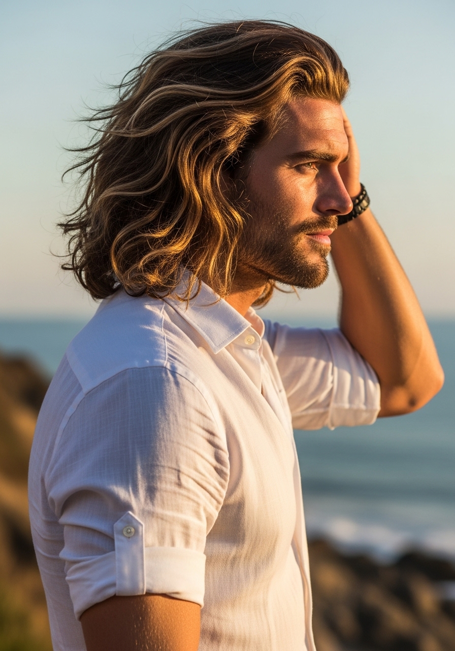 Salzige Wellen, natürliche Strähnen und ein Look wie frisch vom Strand: Der Surfer-Style ist wie gemacht für lange Haare. Männer, die es locker und entspannt mögen, sind hier goldrichtig.