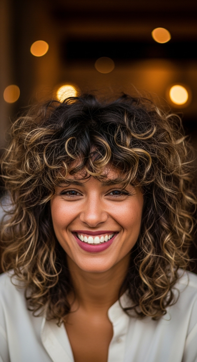 - Warme Highlights: Karamell oder Kupfer setzen subtile Akzente in den Locken.